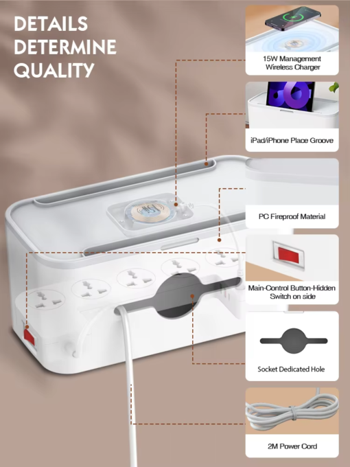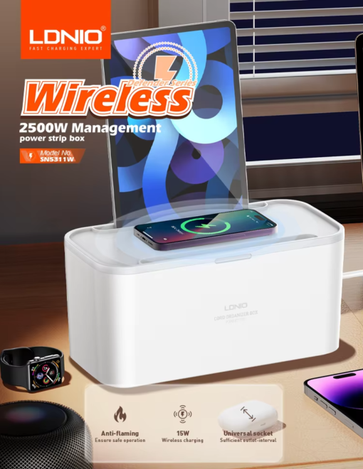 يبدو الأمر مزعجًا جدًا لأن كابلات الشحن المتعددة متشابكة معًا على طاولة العمل. ولكن لدينا حل لهذه المشكلة العادية. ما هذا؟ نعم، منتجنا عالي التصنيف LDNIO SN5311W ، يأتي شريط الطاقة لصندوق التنظيم لترتيب طاولة العمل الخاصة بك بعناية.