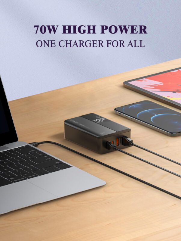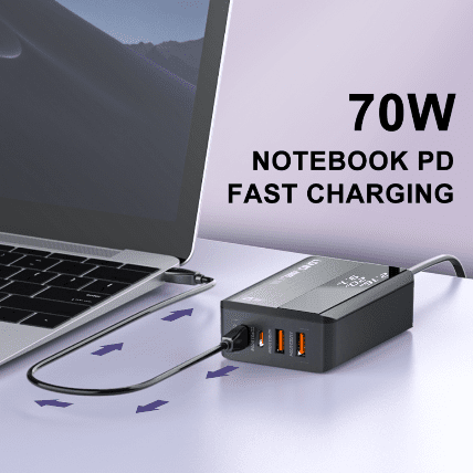 - Dual USB-C ports with up to 70W max power output each via PD 3.0 + QC 4.0 fast charging