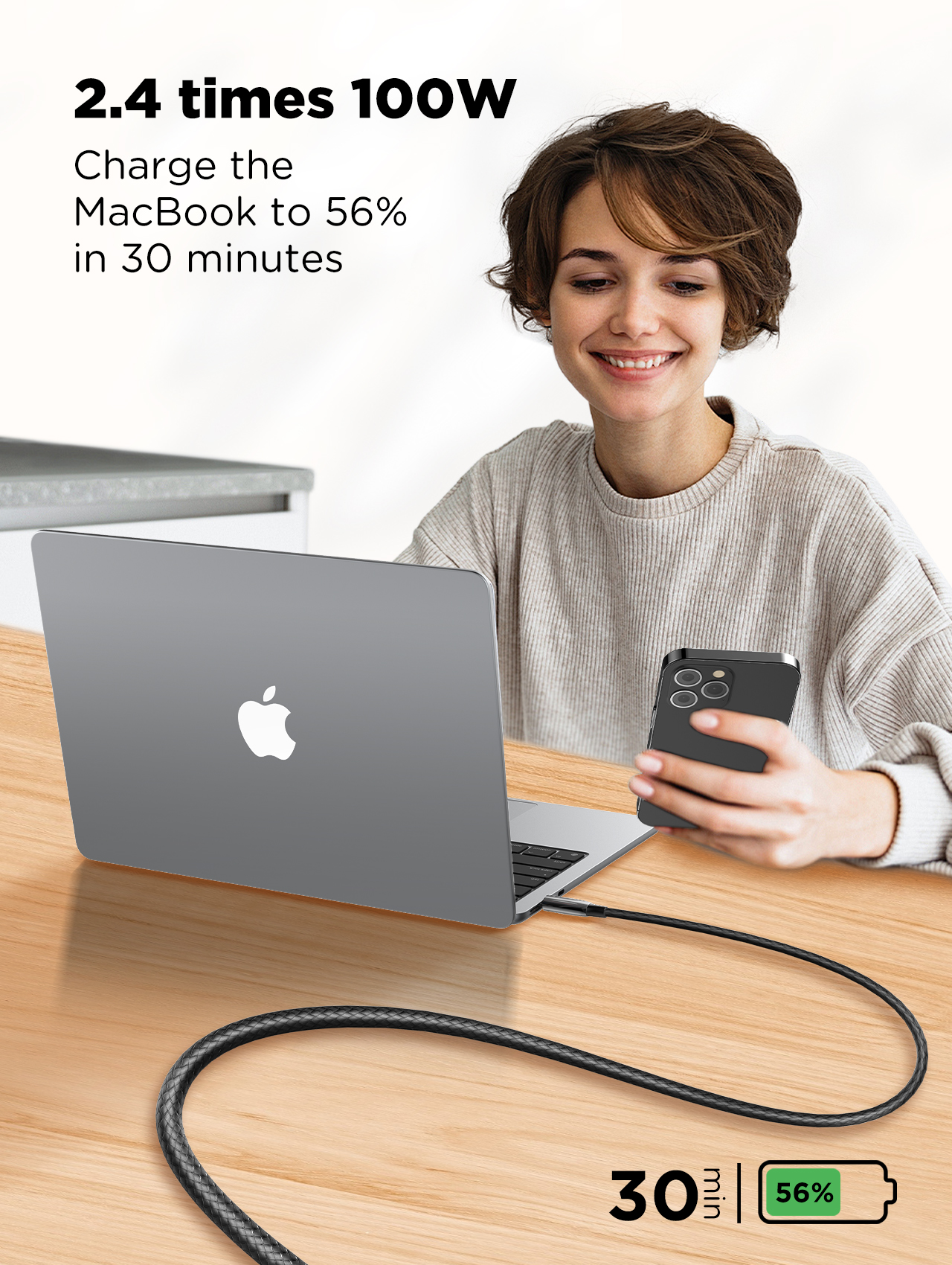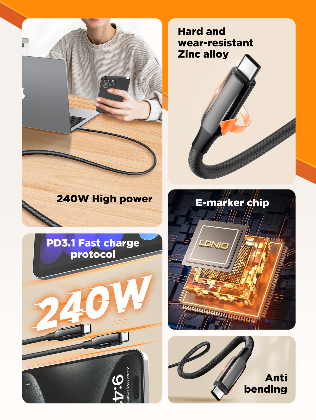 240W high-power fast charging, intelligently identifies the charging device, which can fast charge and transmit data for devices such as smartphones and tablets that support fast charging.