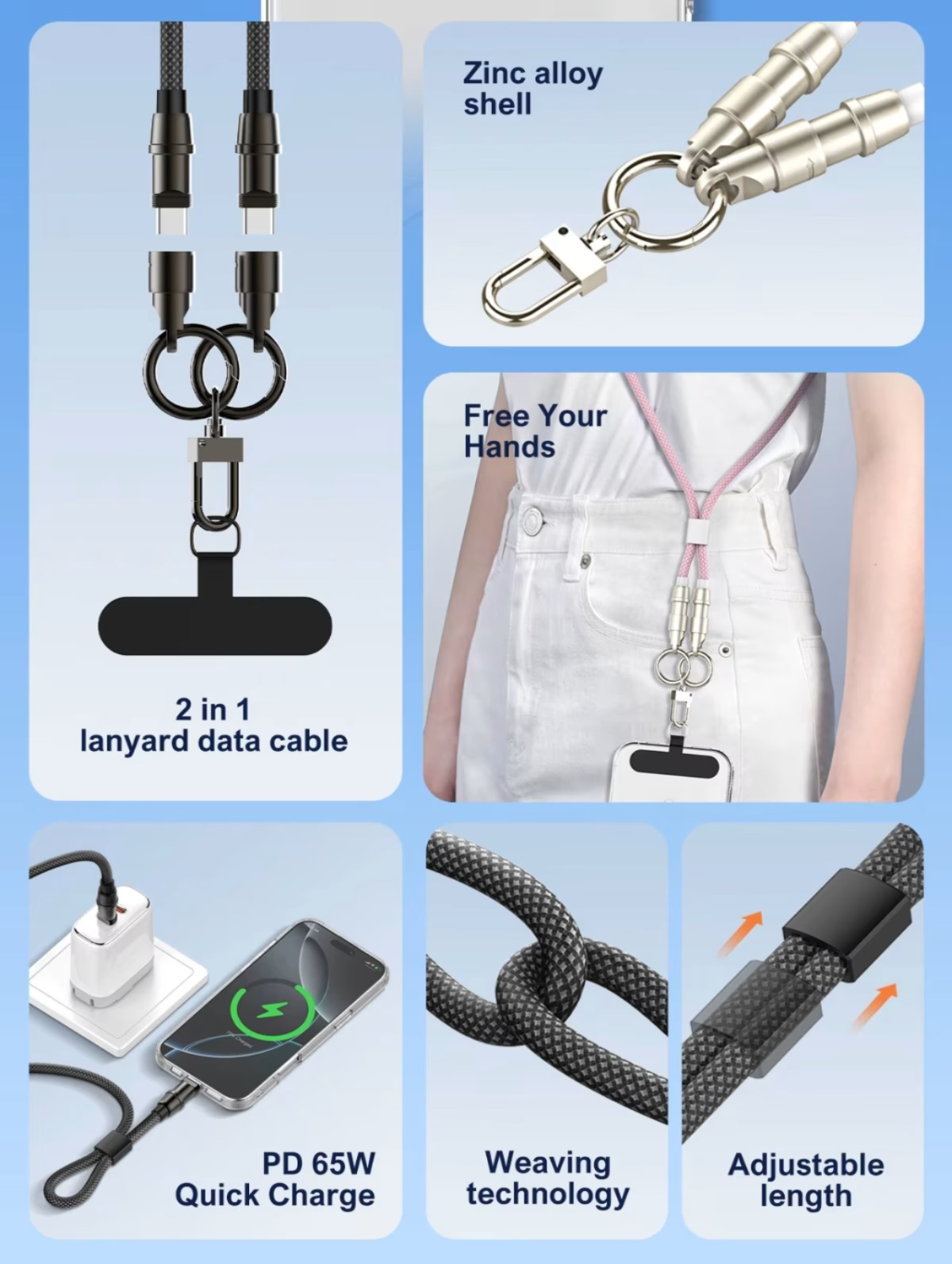 Nylon Lanyard Design: Compact 1.2m length with a lanyard for easy portability and tangle-free storage.