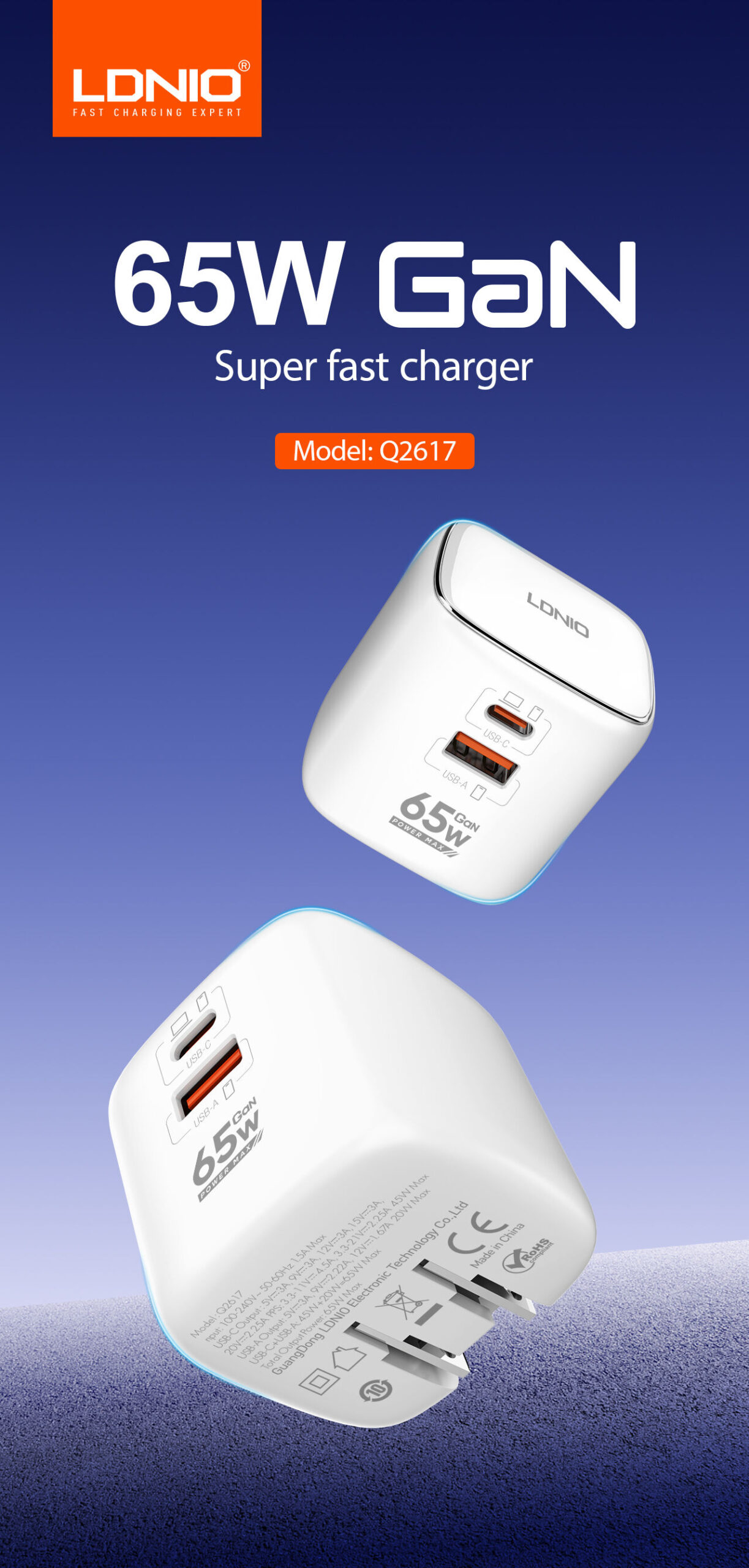 Fast charging up to 65W.