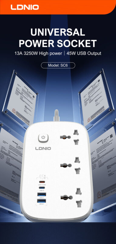The LDNIO SC6 Power Strip is a next-generation power solution designed to meet the demands of today’s tech-driven lifestyle. Whether you’re powering a home office, charging multiple devices in a shared workspace, or managing electronics in a workshop, this power strip delivers the performance, safety, and convenience you need. With a combination of high-capacity output, rapid charging ports, and advanced protective features, the LDNIO SC6 Power Strip is engineered to be the only power hub you’ll ever need.