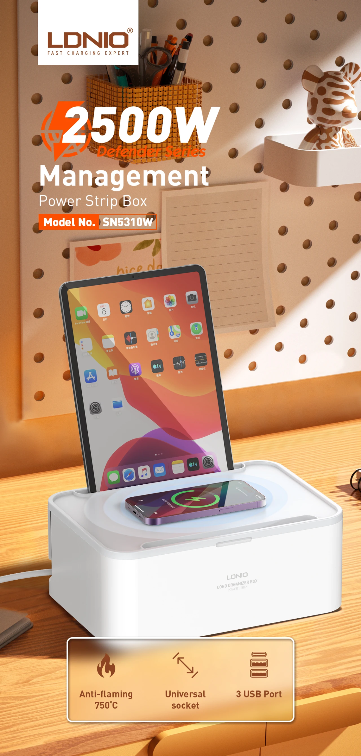 SCW5354 – LDNIO 15W Wireless Management Power Strip Box with 20W PD
