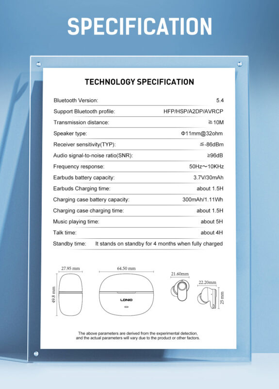 | Charging case battery capacity | 300mAh/1.11Wh |