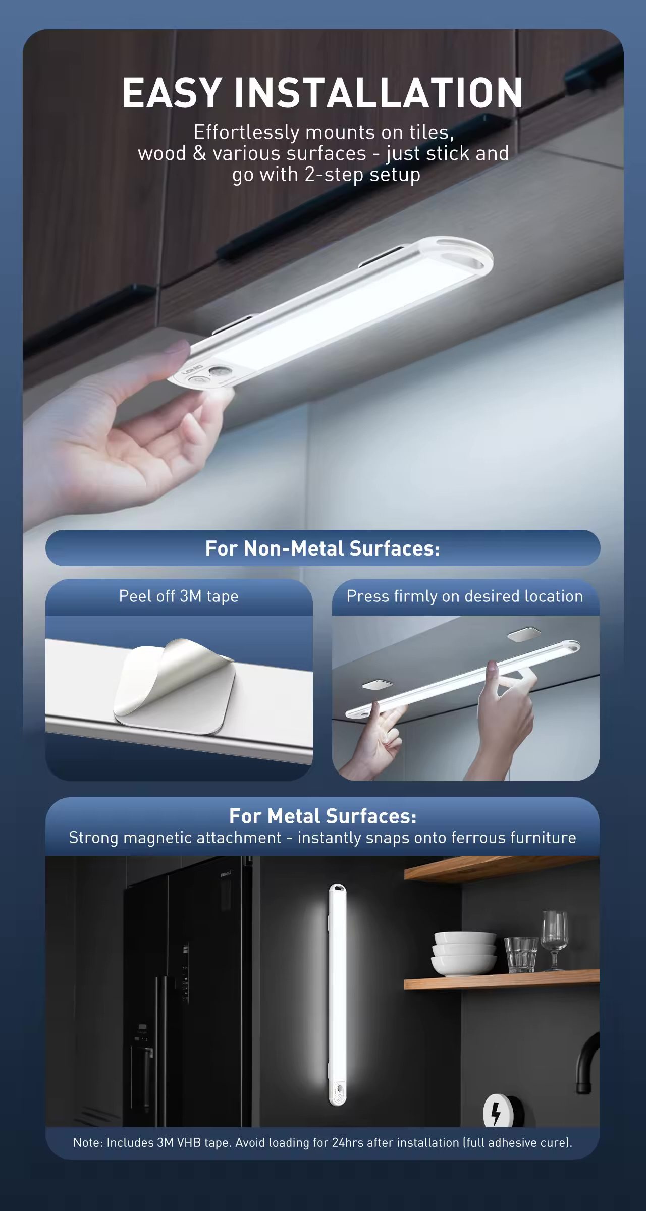 Effortlessly mounts on tiles, wood & various surfaces – just stick and go with 2-step setup.
